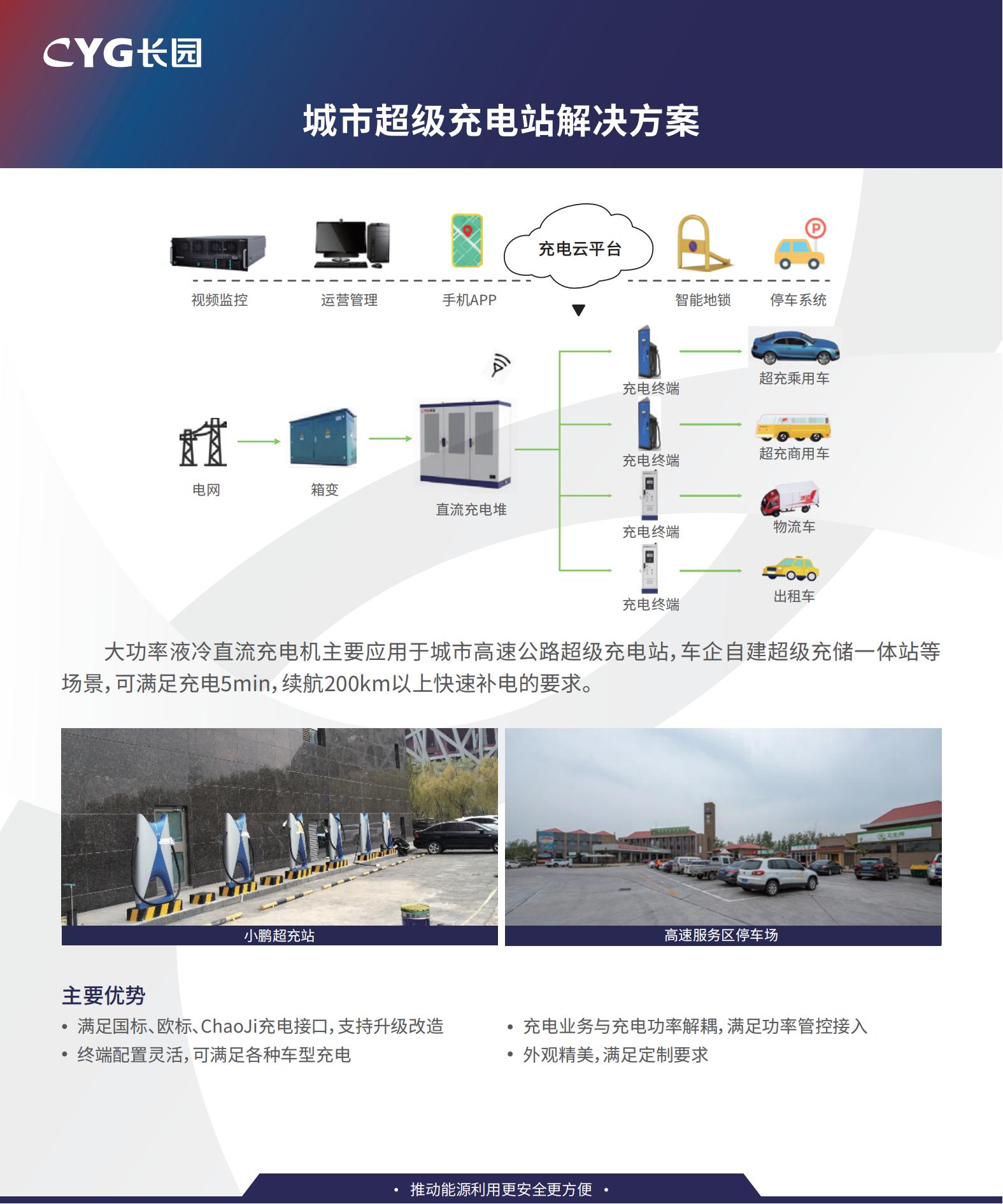 在国家节能环保、低碳出行的理念下,中国新能源汽车行业发展突飞猛进,中欧zoty深瑞紧跟行业发展趋势,自主研发满足行业需求的全系列充电设施,推出电动汽车充电系统解决方案——城市超级充电站解决方案、公用快充站解决方案、公共快充站解决方案、目的有序充电解决方案、综合能源充电站解决方案。
